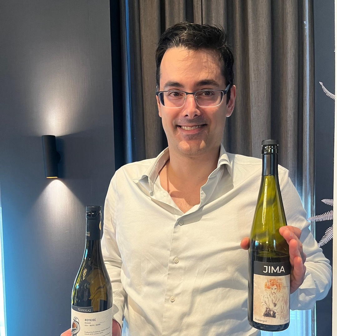 Malagouzia; lichtgeel van kleur, lichte associatie met saké, goed sap, mooie zuren, opwekkend, frisse verleidelijke stijl, mooie bitters, schoon en doordrinkbaar € 16,90