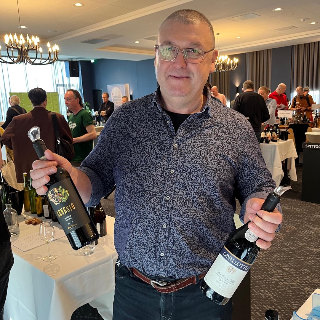 Barbera; donkerrood uiterlijk, fris, sappige aanzet, goede spanningsboog, kruidige ondertoon, mooie tannine, verleidelijk, goede balans en lengte € 26,50