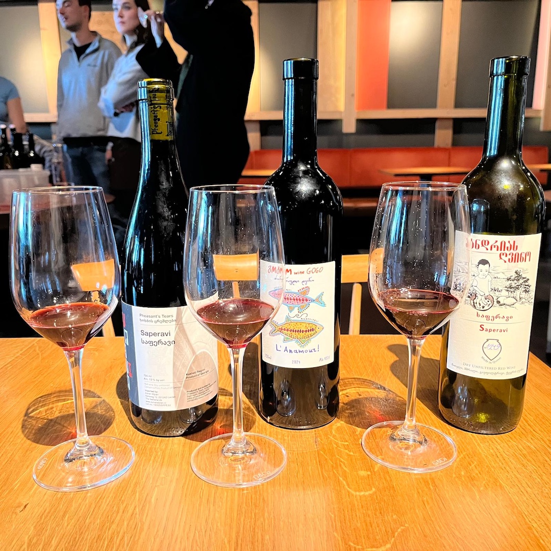 Bij de jaarlijkse Georgië-proeverij van Zuiver Wijnen/Choux stonden zo’n 50 wijnen open. We proefden een selectie, waarbij we telkens twee (en één keer drie) wijnen naast elkaar zetten: dezelfde druif in de hoofdrol, maar verschillend qua stijl.