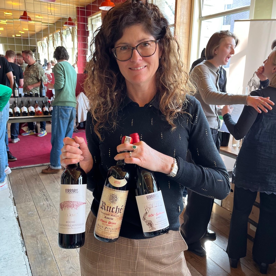 Luca Ferraris is Mister Ruchè (spreek uit: rukee). Hij is totaal verslingerd aan deze druif. Ruchè, een autochtone druif uit Castagnone Monferrato, is een aromatisch rood ras met een zeer verfijnde neus die in de verte wel doet denken aan lacrima di moro d’alba. Vroeger speelde de druif een ondergeschikte rol in blends, maar dorpspastoor Don Giacomo Cauda vond dat zonde van de unieke aromatische expressie; hij besloot als eerste een ruchè-monocepagewijn te maken. Luca Ferraris volgde zijn voorbeeld. Om het delicate boeket te kunnen beschermen ontwikkelde hij een methode van roto-fermentatie. Na de oogst en het ontstelen gaan de wijnen in fermentatietanks waar een soort schoepen in zitten, die één keer per 24 uur ronddraaien. Dit extraheert op heel zachte wijze de aroma’s uit de schillen. Daarna rijpt de wijn in grote houten vaten.
