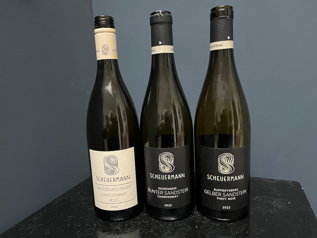 Scheurebe; vrij veel kleur, schone geur, vullend, hecht, heerlijk fruitig, mooie zuren, veel materie, smaakvol, prettige afdronk, doordrinkbaar, verrassende maaltijdwijn met uitstekende prijs-kwaliteitverhouding, geschikt bij lichte Aziatische lunchgerechten (12,5%)