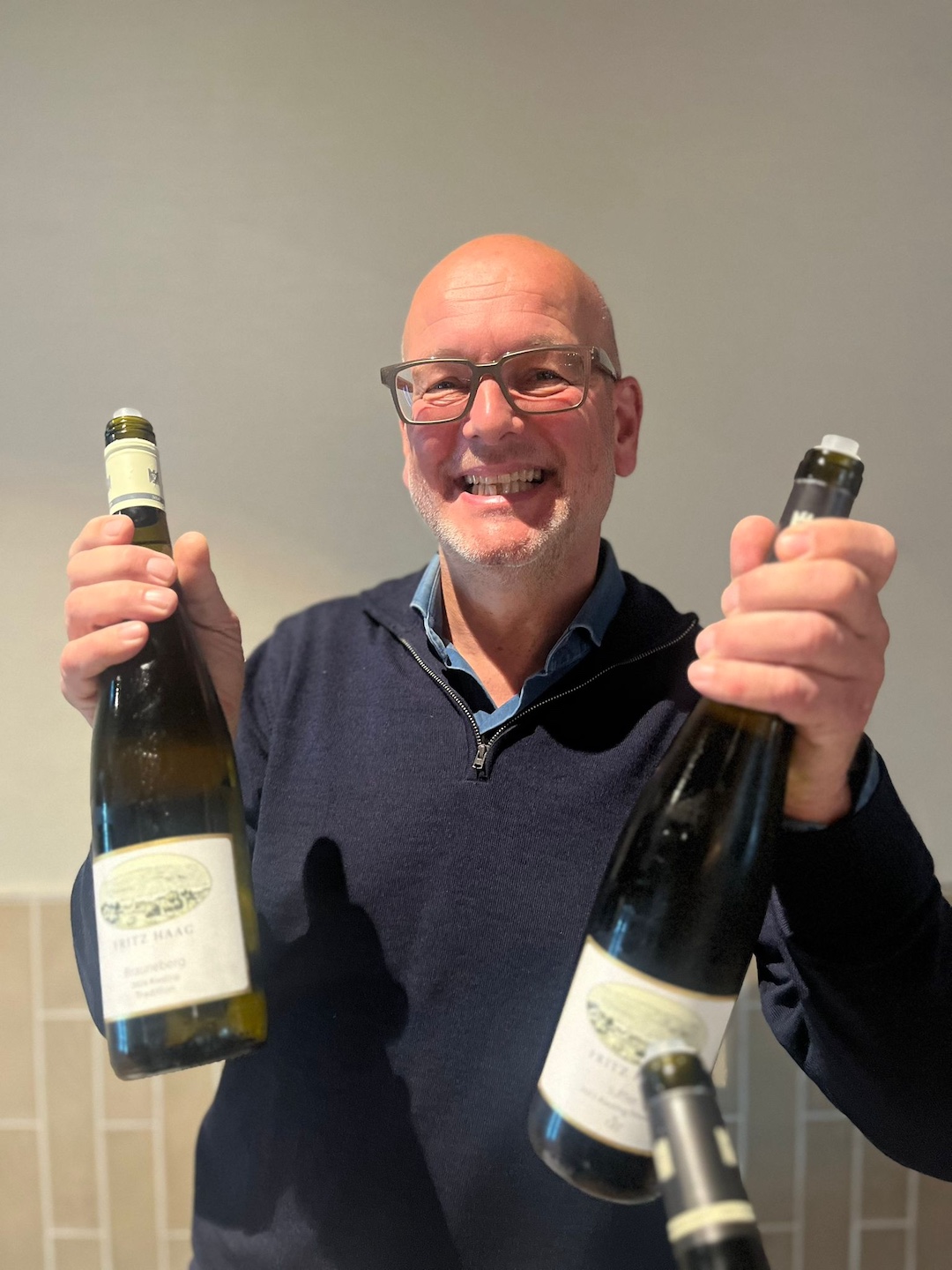 Riesling; lichtgeel van kleur, wat ingetogen geur en smaak, wel mooi rijp wit fruit, fijn van snit, frisse zuren, fijn pepertje in de finale en veel lengte € 57,95