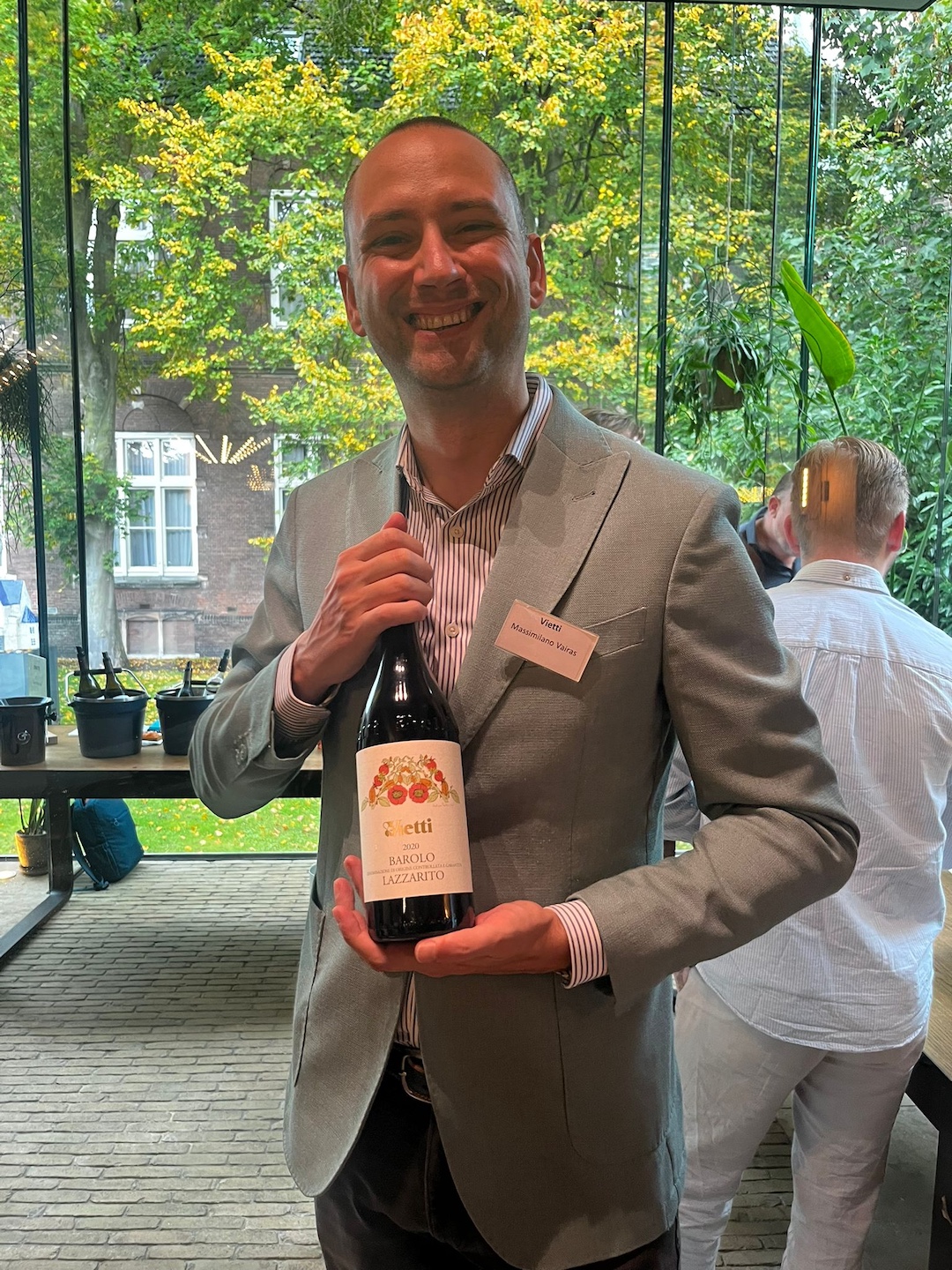 Barbera; lichtrood uiterlijk, nog wat gesloten, goed sap, prettige zuren, alles mooi op zijn plek, goede spanningsboog, elegante stijl ca. € 27,50