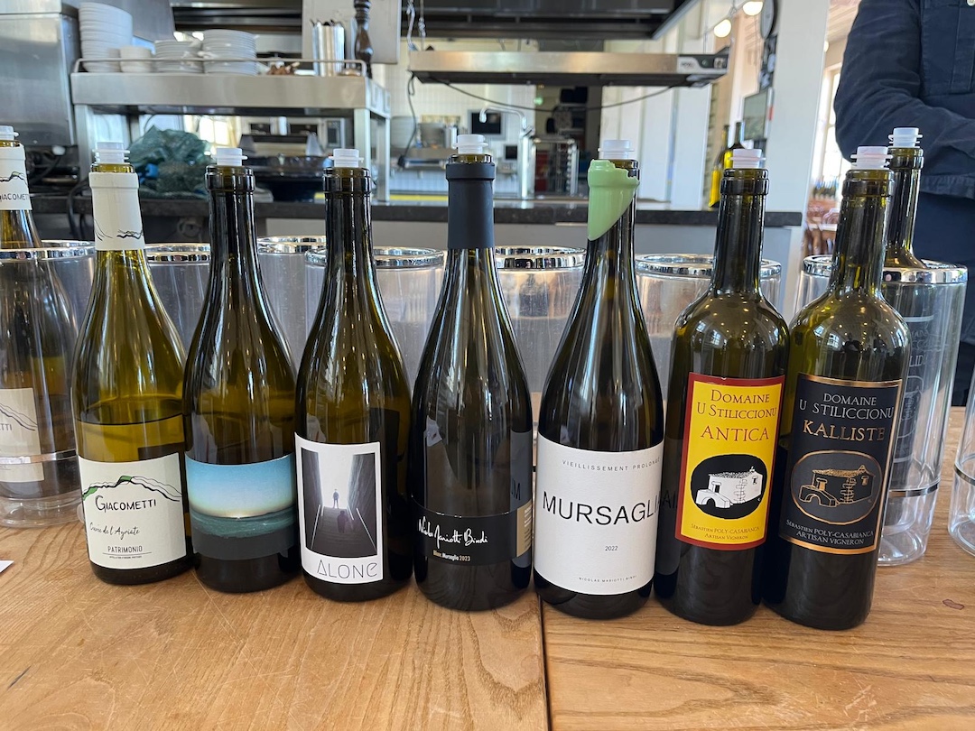 Vermentinu, vin nature; vullend, rustig, zeer aromatisch, goed sap, volwassen gastronomische wijn, mooie balans, goede lengte (13%) € 22,50